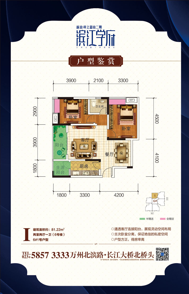 6号楼1号房 2室-2厅-1卫·81.22M²