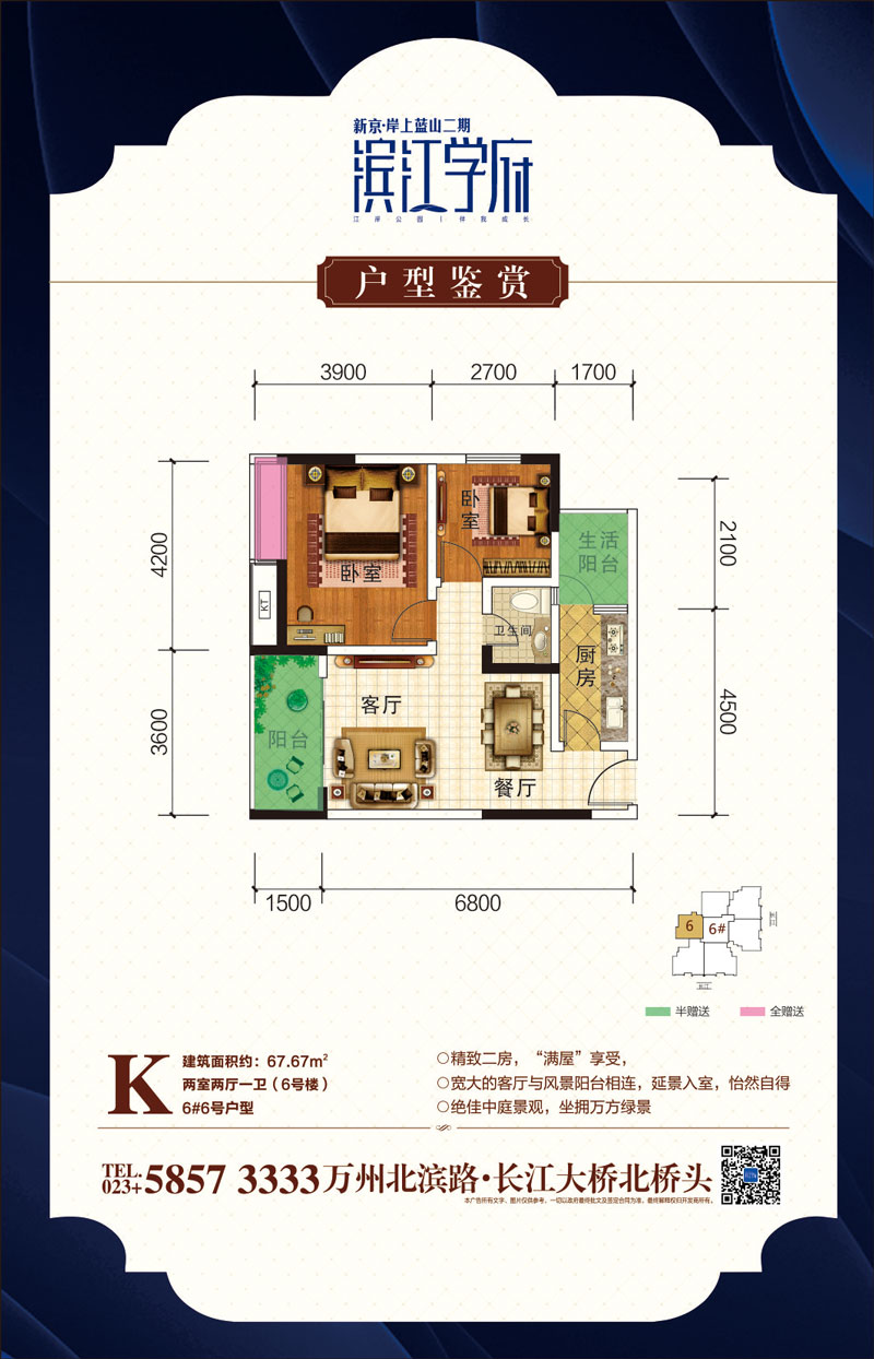 6号楼6号房 2室-2厅-1卫·67.67M²