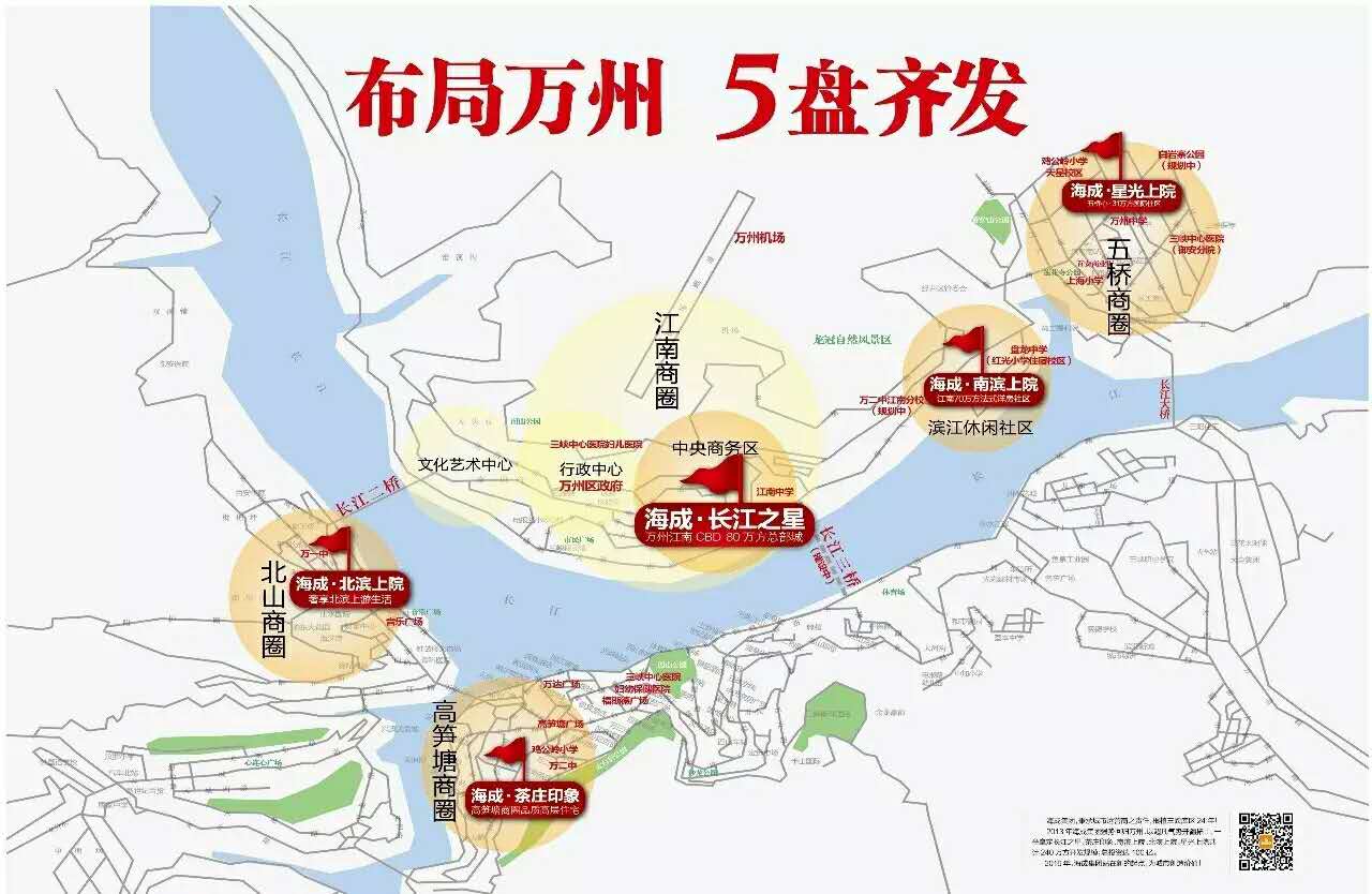 海成·茶庄印象是由重庆海成集团回归万州“双核一心”三项目中的高笋塘CBD核心高端现代住宅,地处万州主城黄金地段(原老建委和茶厂),目前是万州高笋塘商圈稀有的新建住宅。项目毗邻诗仙路,东临桂花路,南临诗仙路,西靠白岩三支路,周边交通网络发达,生活便捷,地段价值无可复制。