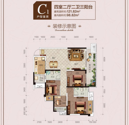 C1 4室-2厅-2卫·121.82M²