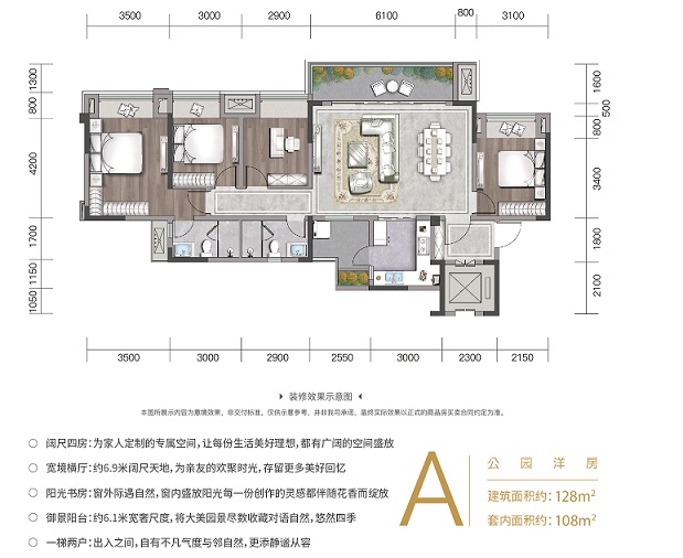 A户型 3室-2厅-2卫·107M²