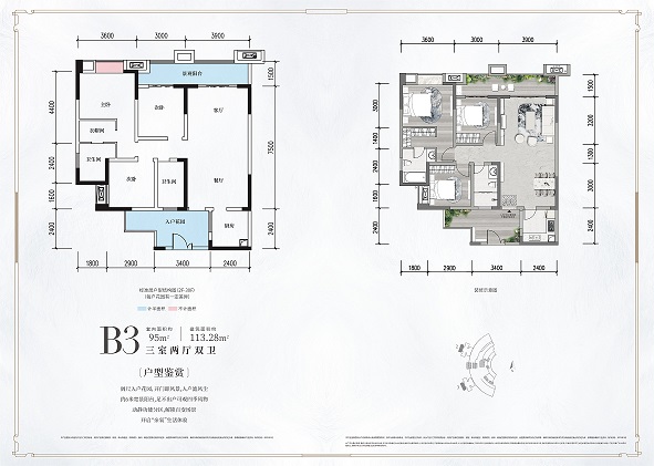 B3户型 3室-2厅-2卫·95M²