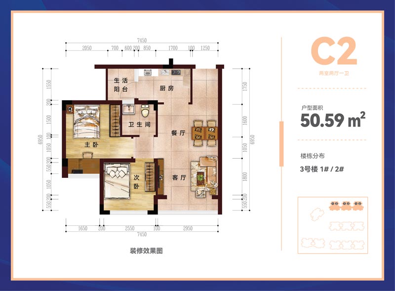 C2 2室-1厅-1卫·50.59M²