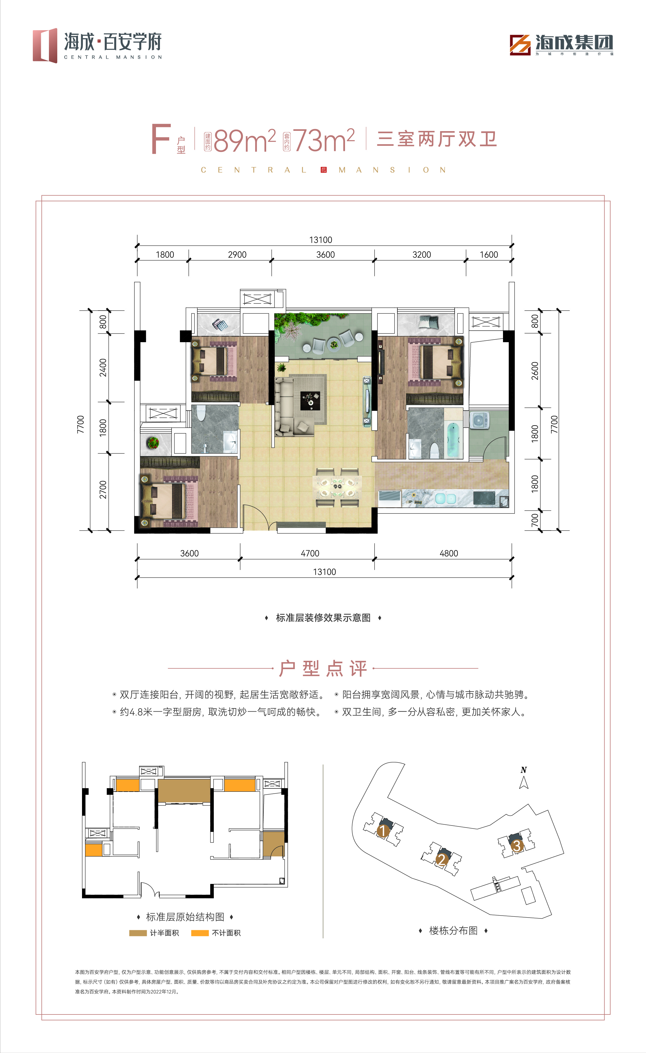F 3室-2厅-2卫·89M²