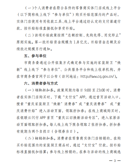 关于推进实施 2025 年家装厨卫“焕新” 补贴政策的通知